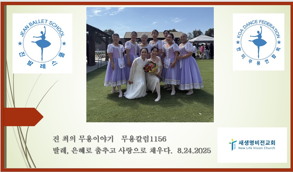 무엇보다도, 이런 귀한 자리에 우리를 초청해 주신 새생명교회와, 춤을 통해 삶의 기쁨을 나눈 실버발레 단원들께 깊은 감사를 드린다.