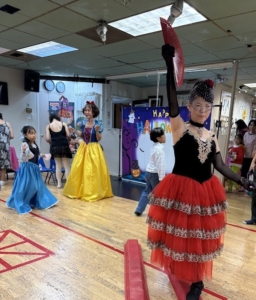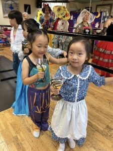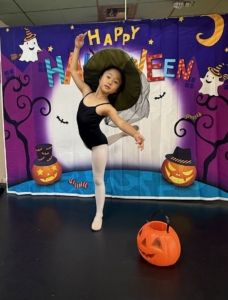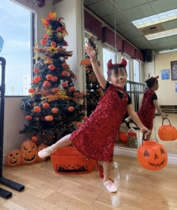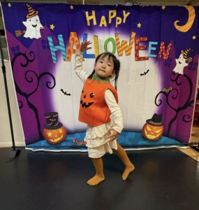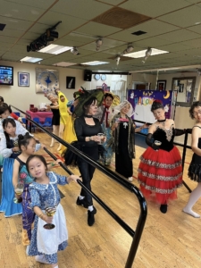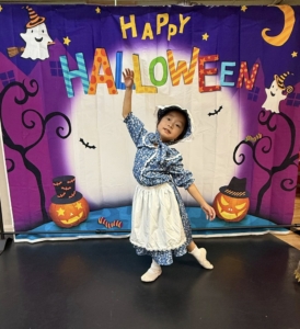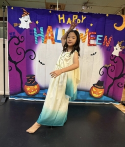 That day’s class was unlike any other. Everyone wore special Halloween costumes as they practiced fundamental ballet movements at the barre, while also learning ballet’s expressive language—drama mime. With lines like “Princess, will you marry me?” and “No! Someone is watching me!”, laughter never ceased. Scenes unfolded — Snow White biting into an apple and falling asleep, Sleeping Beauty pricking her finger on a spindle, Cinderella slipping on her glass slipper, and the witch fleeing in surprise. It was a class filled with stories, imagination, and the living spirit of art.