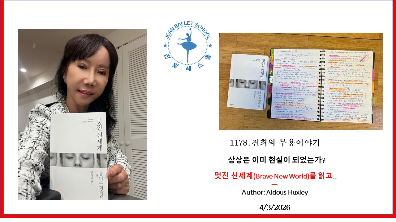 1178.멋진 신세계(Brave New World)를 읽고.. 상상은 이미 현실이 되었는가? 발표회를 끝내고 나서야 비로소 한숨 돌릴 여유가 생겼다. 그동안 바쁘다는 핑계로 미뤄두었던 책을 이제서야 펼쳐본다. 독서 모임에서 한 달 전에 읽었어야 할 책, 멋진 신세계(Brave New World)다. 세계 3대 디스토피아로 꼽히는 이 작품은 1932년, 올더스 헉슬리( Aldous Huxley) 에 의해 발표되었다. 그가 그려낸 시간은 서기 2540년, 이른바 ‘AF 632년’이다. 백 년 전의 [...]